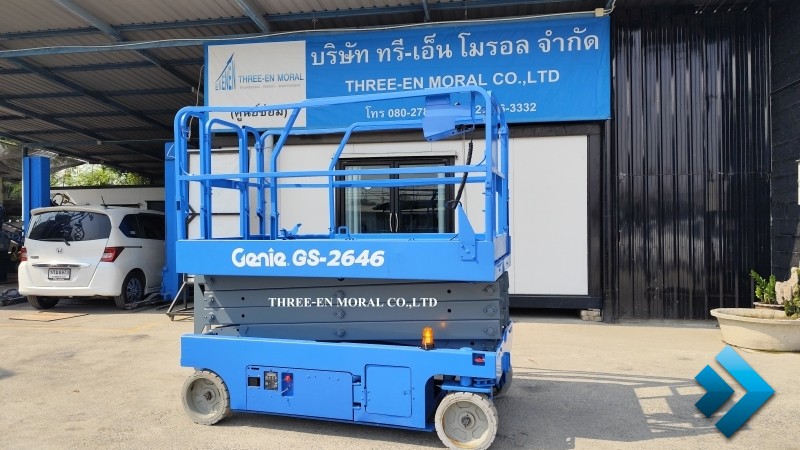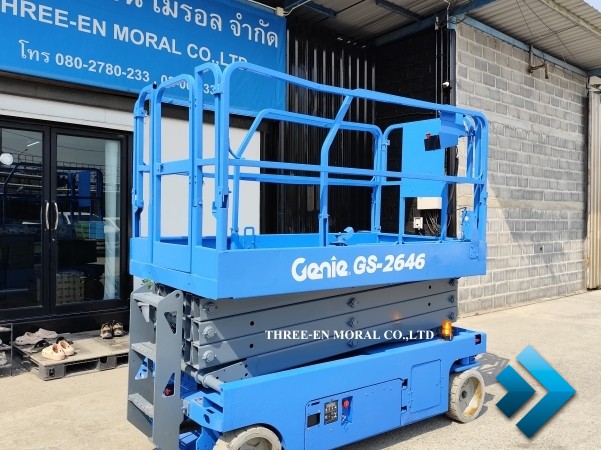 รถกระเช้า Scissor Lift Genie GS-2646 รุ่นที่นิยมที่สุดในตลาดรถกระเช้า ใช้งานได้อเนกประสงค์ มีความปลอดภัยสูง อะไหล่หาง่าย มาตรฐานอเมริกา ทดสอบการใช้งานให้ดูทุกระบบ