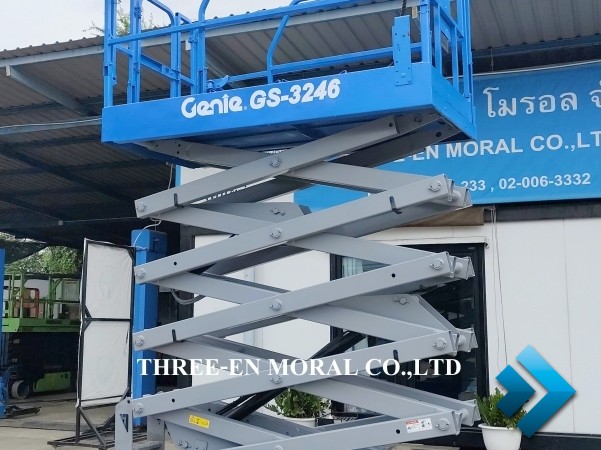 รถกระเช้า Scissor Lift Genie GS-3246 แบรนด์ที่นิยมที่สุดในตลาดรถกระเช้า ใช้งานได้อเนกประสงค์ มีความปลอดภัยสูง อะไหล่หาง่าย มาตรฐานอเมริกา ทดสอบการใช้งานให้ดูทุกระบบ