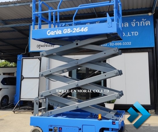 รถกระเช้า Scissor Lift Genie GS-2646 รุ่นที่นิยมที่สุดในตลาดรถกระเช้า ใช้งานได้อเนกประสงค์ มีความปลอดภัยสูง อะไหล่หาง่าย มาตรฐานอเมริกา ทดสอบการใช้งานให้ดูทุกระบบ