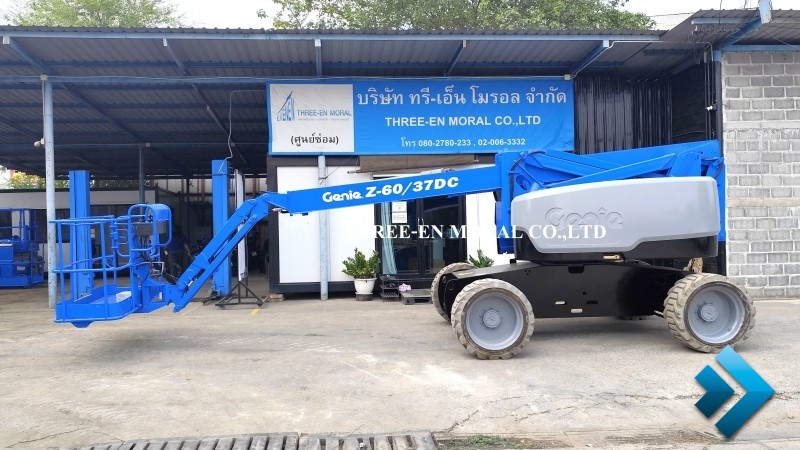 รถกระเช้า Boom Lift Genie Z60/37 รุ่นที่นิยมที่สุดในตลาดรถกระเช้า ใช้งานได้อเนกประสงค์ มีความปลอดภัยสูง อะไหล่หาง่าย มาตรฐานอเมริกา ทดสอบการใช้งานให้ดูทุกระบบ