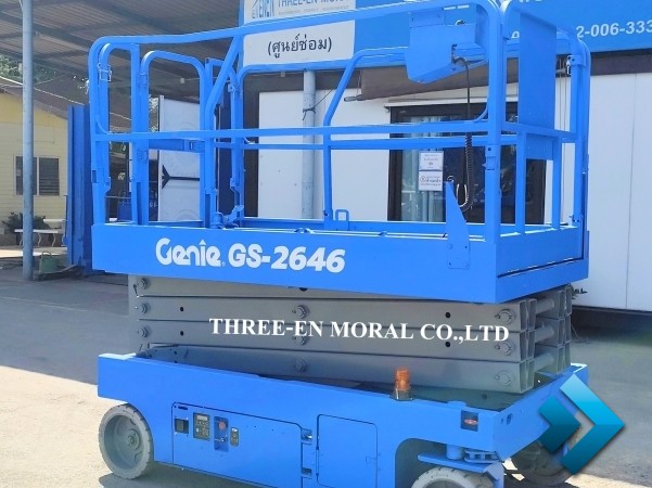 รถกระเช้า Scissor Lift Genie GS-2646 รุ่นที่นิยมที่สุดในตลาดรถกระเช้า ใช้งานได้อเนกประสงค์ มีความปลอดภัยสูง อะไหล่หาง่าย มาตรฐานอเมริกา ทดสอบการใช้งานให้ดูทุกระบบ