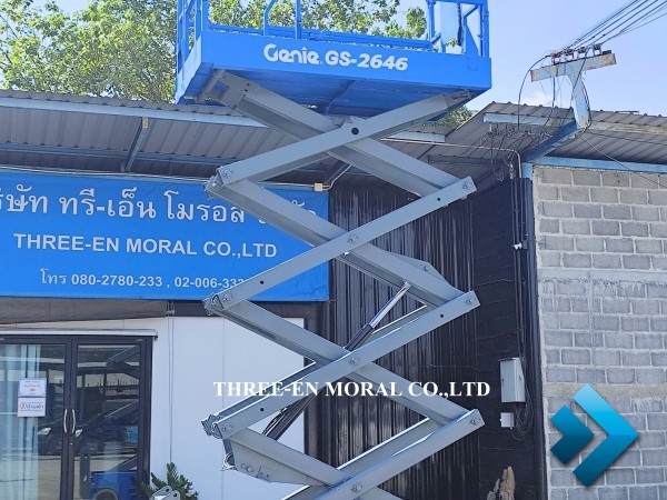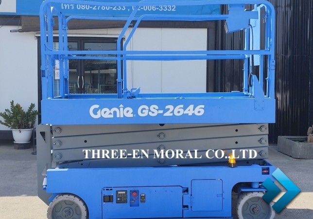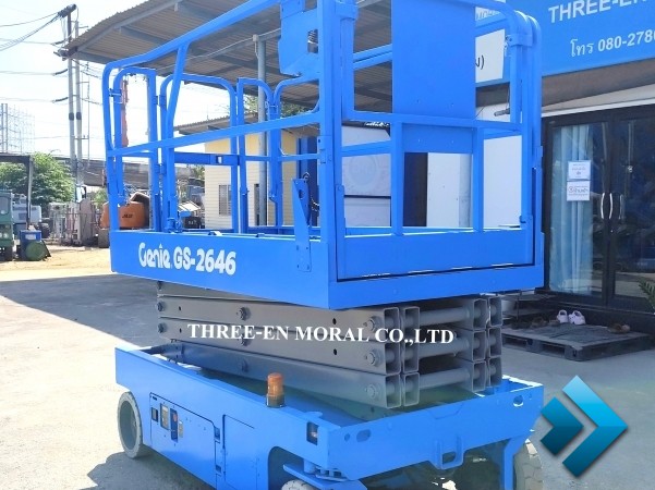 รถกระเช้า Scissor Lift Genie GS-2646 รุ่นที่นิยมที่สุดในตลาดรถกระเช้า ใช้งานได้อเนกประสงค์ มีความปลอดภัยสูง อะไหล่หาง่าย มาตรฐานอเมริกา ทดสอบการใช้งานให้ดูทุกระบบ