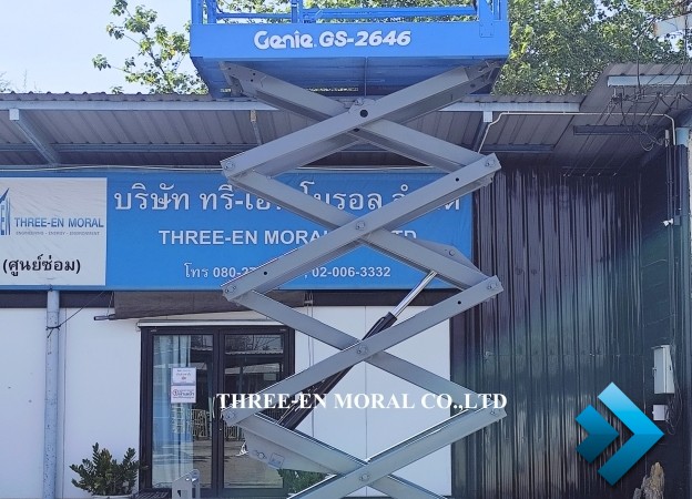 รถกระเช้า Scissor Lift Genie GS-2646 รุ่นที่นิยมที่สุดในตลาดรถกระเช้า ใช้งานได้อเนกประสงค์ มีความปลอดภัยสูง อะไหล่หาง่าย มาตรฐานอเมริกา ทดสอบการใช้งานให้ดูทุกระบบ