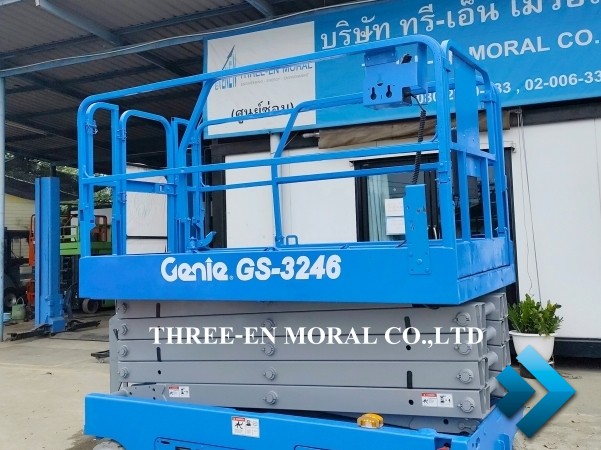 รถกระเช้า Scissor Lift Genie GS-3246 แบรนด์ที่นิยมที่สุดในตลาดรถกระเช้า ใช้งานได้อเนกประสงค์ มีความปลอดภัยสูง อะไหล่หาง่าย มาตรฐานอเมริกา ทดสอบการใช้งานให้ดูทุกระบบ