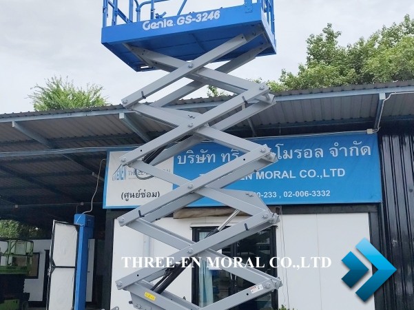 รถกระเช้า Scissor Lift Genie GS-3246 แบรนด์ที่นิยมที่สุดในตลาดรถกระเช้า ใช้งานได้อเนกประสงค์ มีความปลอดภัยสูง อะไหล่หาง่าย มาตรฐานอเมริกา ทดสอบการใช้งานให้ดูทุกระบบ