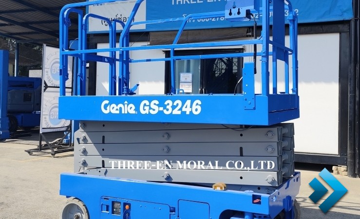 รถกระเช้า Scissor Lift Genie GS-3246 แบรนด์ที่นิยมที่สุดในตลาดรถกระเช้า ใช้งานได้อเนกประสงค์ มีความปลอดภัยสูง อะไหล่หาง่าย มาตรฐานอเมริกา ทดสอบการใช้งานให้ดูทุกระบบ
