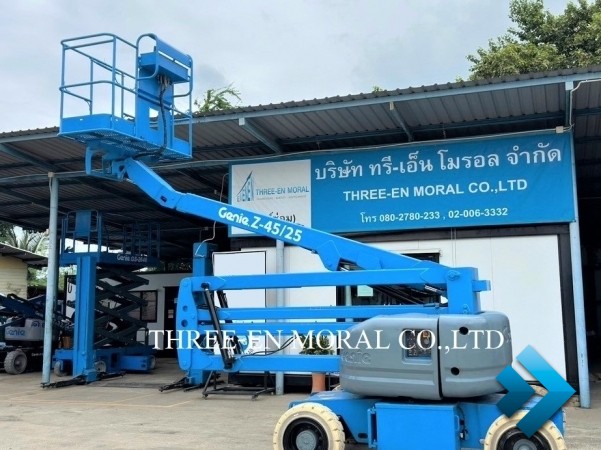 รถกระเช้า Boom Lift Genie Z45-25 แบรนด์ที่นิยมที่สุดในตลาดรถกระเช้า ใช้งานได้อเนกประสงค์ มีความปลอดภัยสูง อะไหล่หาง่าย มาตรฐานอเมริกา ทดสอบการใช้งานให้ดูทุกระบบ